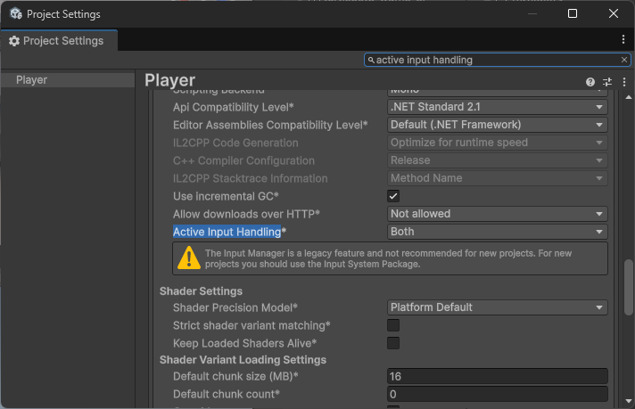 - Active Input HandlingをBothに変更